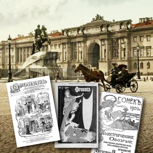 Журнал “Огонек” выходил с 1899 по 1918 годы, первоначально как еженедельное иллюстрированное приложение к влиятельной петербургской газете умеренно либерального направления “Биржевые ведомости”. Достаточно быстро завоевав популярность у читателей, “Огонек” стал самостоятельным изданием, ориентированным на широкую аудиторию. С журналом сотрудничали наиболее известные журналисты, писатели, фотографы, литературные критики.